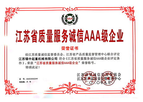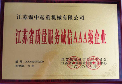 公司獲得《江蘇省質(zhì)量服務(wù)誠信AAA級企業(yè)》