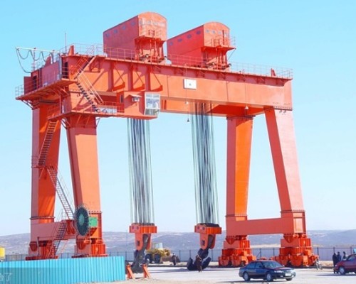 1、門座式起重機:門座起重機是具有沿地面軌道運行,下方可通過鐵路車輛或其他地面車輛的門形座架的可回轉(zhuǎn)臂架型起重機。它廣泛應用于港口、碼頭貨物的機械裝卸、造船廠船舶的施工、安裝,以及大型水電站工地的建壩工程,是實現(xiàn)生產(chǎn)過程機械化不可缺少的重要設備。